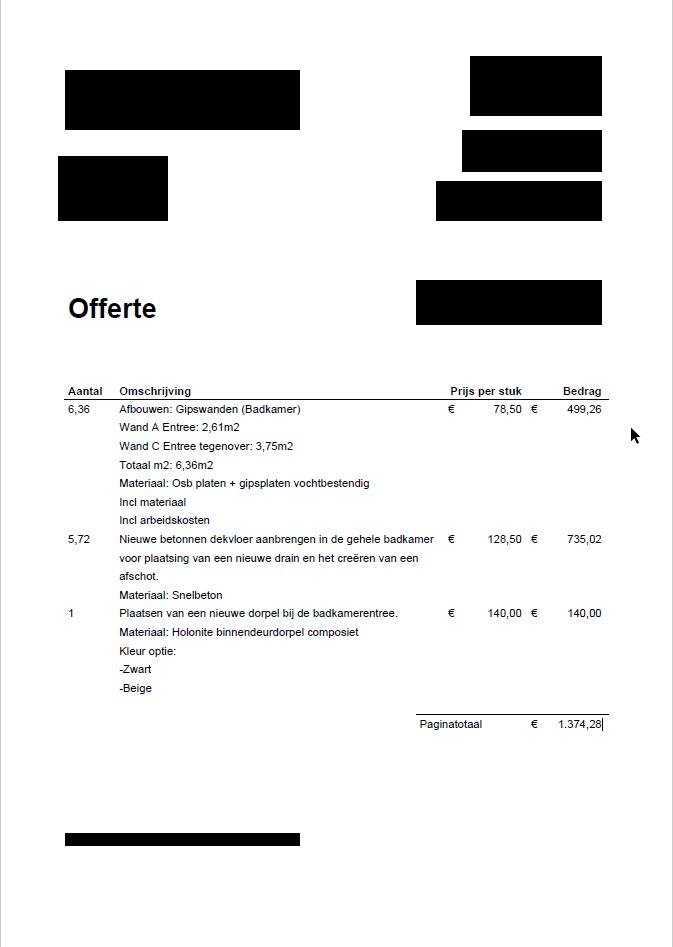 | Antal | Omsβ¦.. | Prijs per stok | Bedrag |