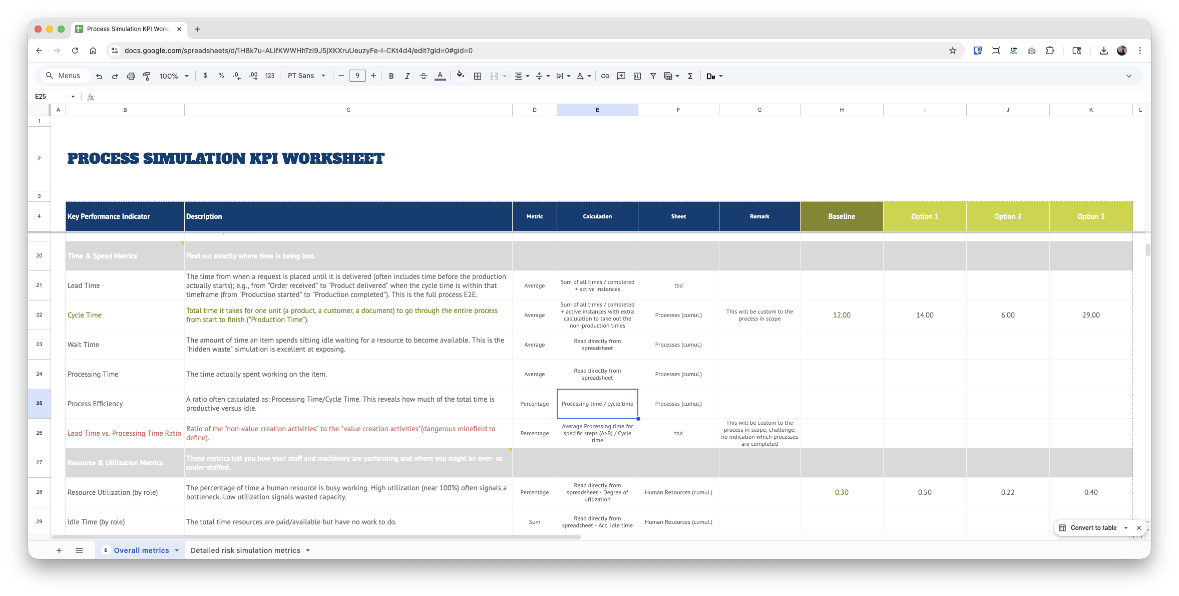 I am working on a process simulation workflow that shall give me the desired metrics conveniently in a new worksheet so that I can compare different options (I am using ARIS Process Simulation if someone is interested). The simulation engine allows you to export all statistics in an Excel file (example attached), and within that file the times are in an “hour : minutes : second” format - no matter how many hours it will take.