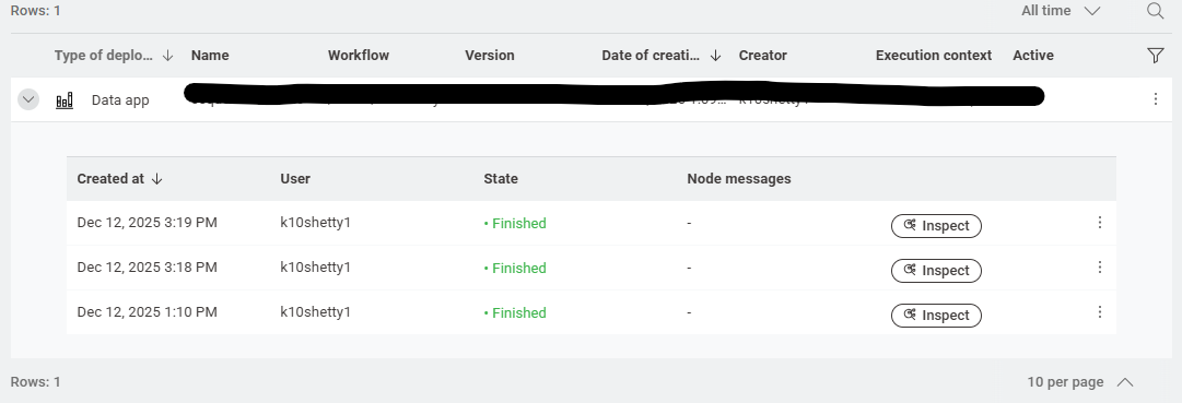 - Open the latest run and click Inspect to see which nodes actually executed and where the flow stopped.