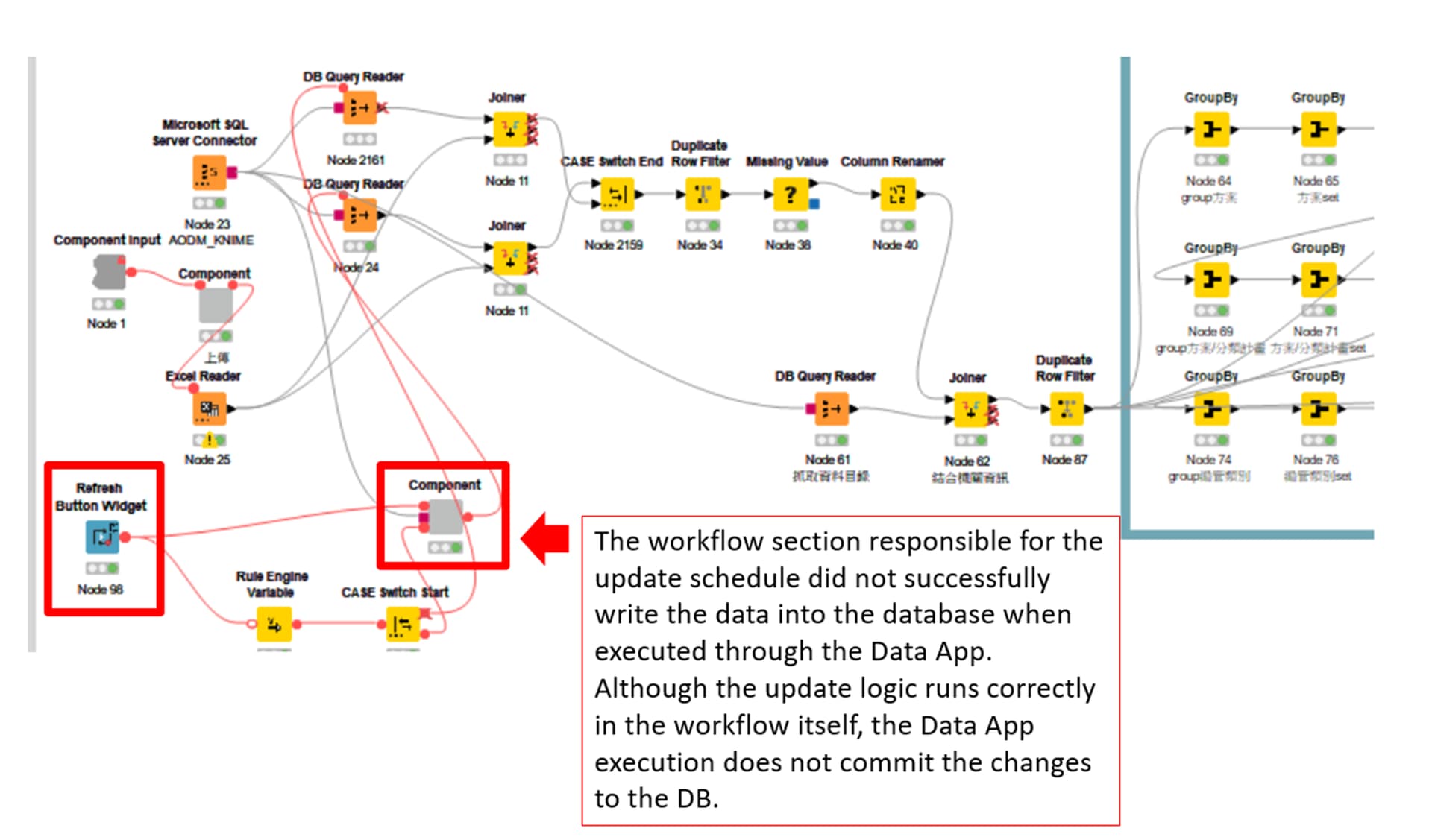 @lca50666 I am not sure which DB Query Reader you expect to be re-executed, but from your screenshot, it looks like node 61 (DB Query Reader) is not downstream of the Refresh Button.