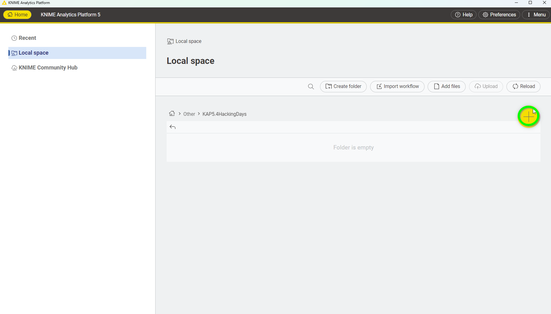 When navigating to a folder on my local workspace and creating a workflow using the yellow + button, the button is not clickable on the “entire surface”, but only on the edges. See this video: