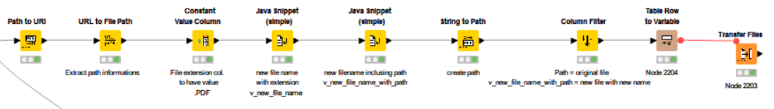 After the URL to File Path node I can see that the File extension is indeed empty so i’ve used a constant value column to add the extension PDF.