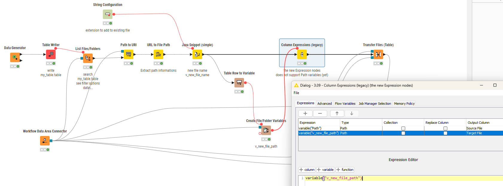 @PanteleyShmele1 the old Column Expressions node does support Path variables. So, you can construct something like this where the original file is being copied with the new name (and location if you want) and then the old one is being deleted. This is not ideal. But it does work.
