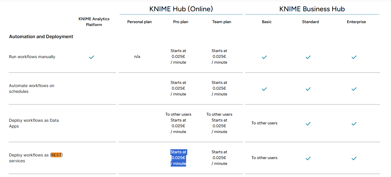 Hi i have aquestion about rest api. in the knime server medium the rest api for executing workflows is avilables. What abut the team plan it is possible to execute workflows using rest api?