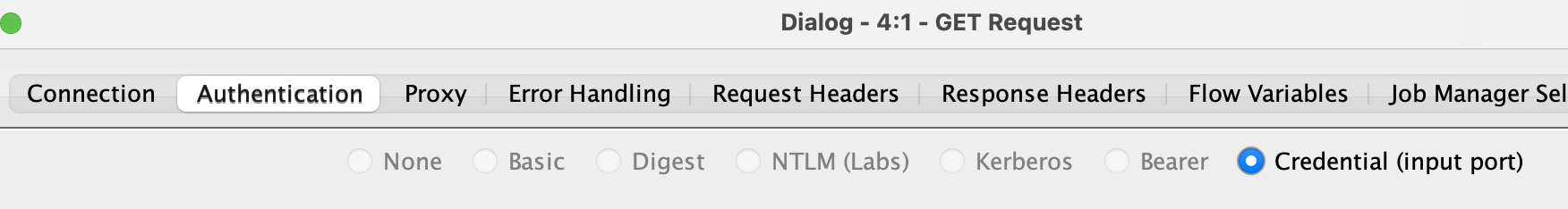 It takes any “Credential” port object (that’s what we call the blue non-data outputs; hover over it) and it fills out the Authentication tab choice in the GET Request node, so you do not need to select the “Bearer” manually. Initially, I assumed you already got the bearer token somewhere else.