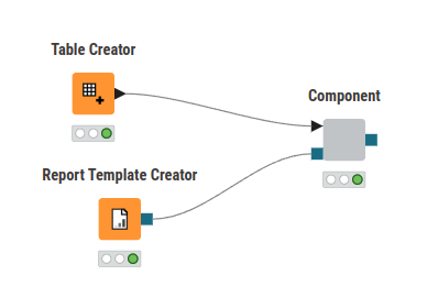 Did you then go out of the component and connect a Report Template Generator node to the new Report input of the component, which was added as a result of enabling the report generation? Like so: