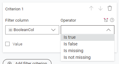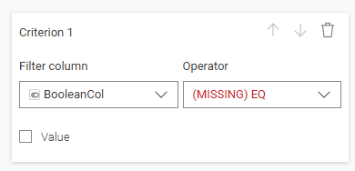 The “Valuze” option is displayed initially if the column type boolean is chosen but then disappears causing some confusion: