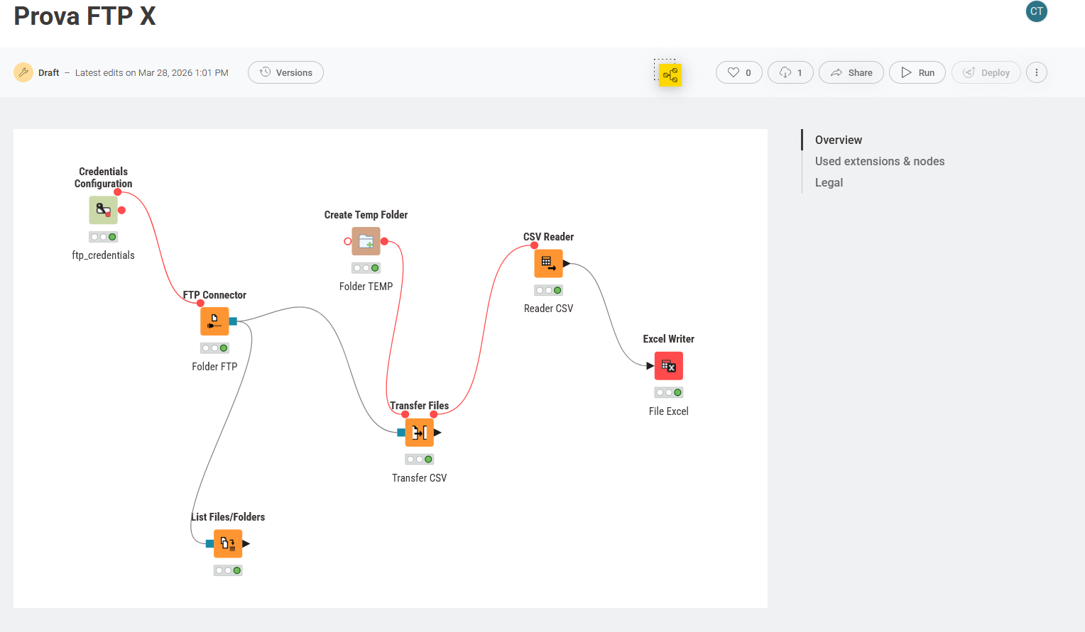 Hi, I need information on a workflow I need to create. Essentially, it needs to take CSV files from FTP folders and process and save them in Excel. I’ve done it locally. Now I need to set up an automatic schedule for 11:59 PM Monday through Friday. I have a Team subscription, but I can’t configure the Deploy button. It remains inactive. Can you help me? Thanks.