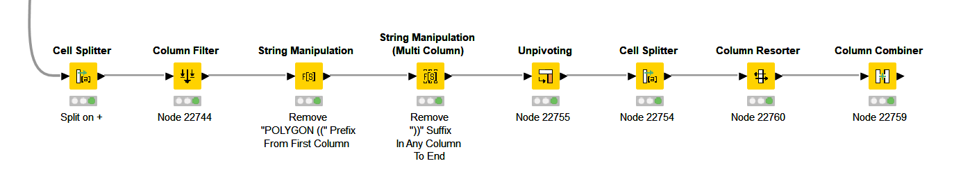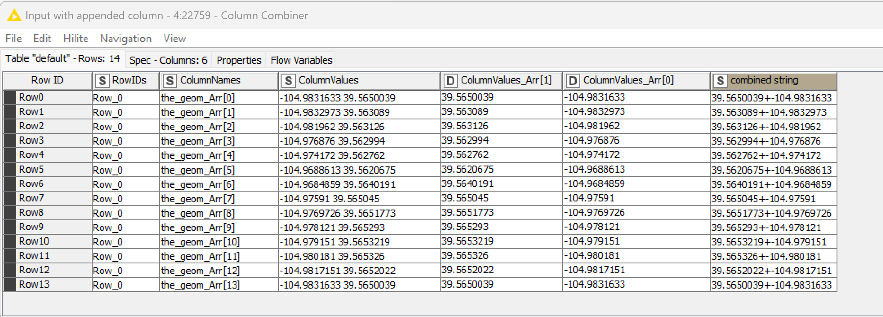 It seems they flipped the lat/long points for each point in the shapefile. I don’t know how I can flip the points in knime. And they smashed in a “+” instead of leaving a space. Any ideas or specific nodes you can think of that will reformat lat/long points to their desired format?