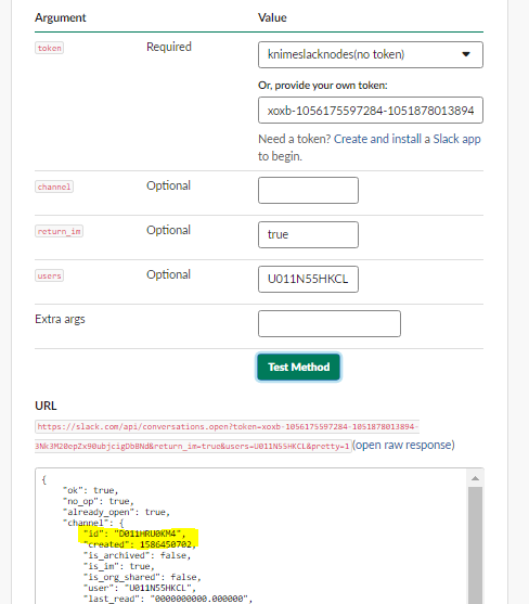 Be careful with how you use the user tokens though. The bot token will post as the bot whereas the user token lets KNIME send messages on behalf of the user: