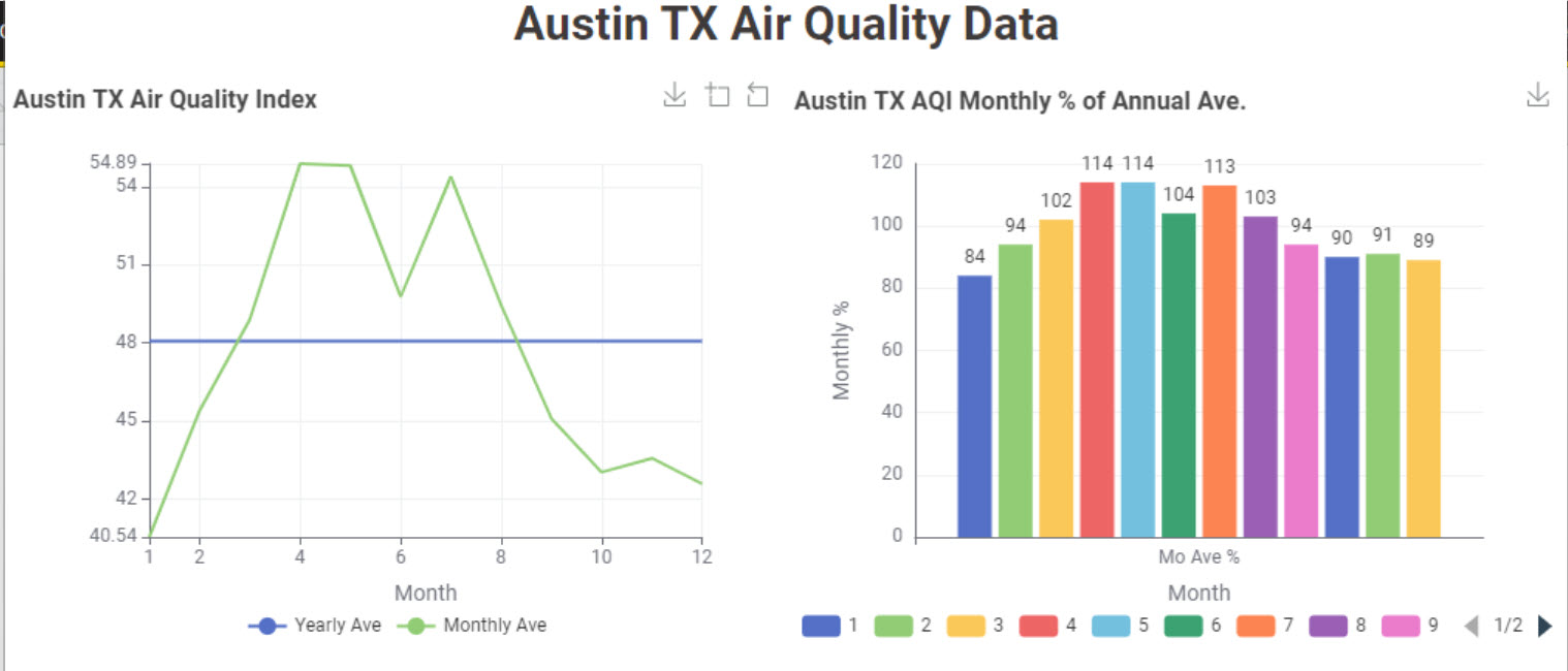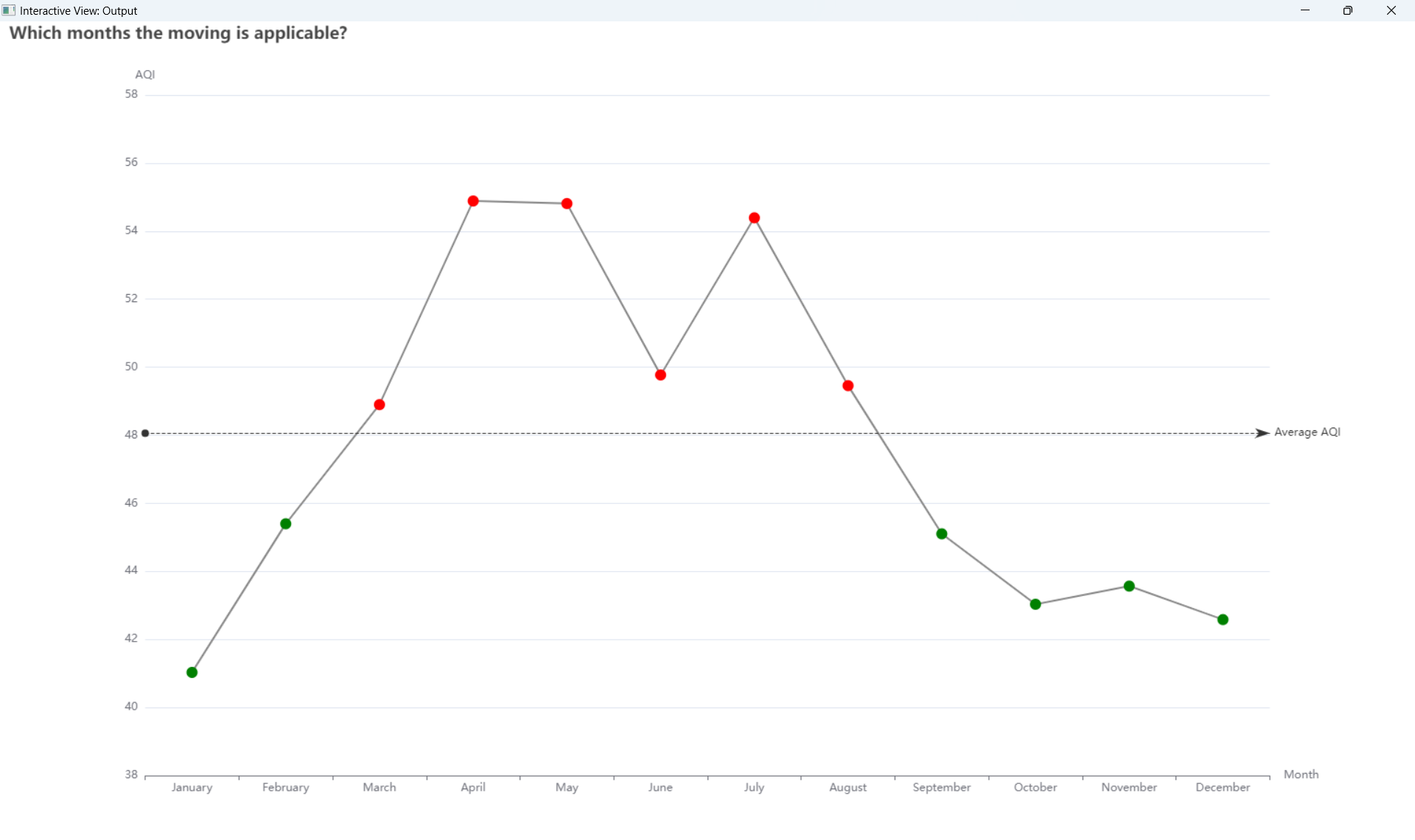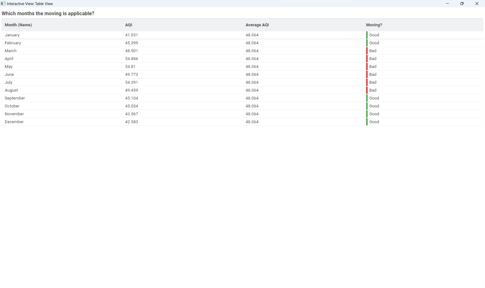 A quick dashboard to show the average AQI per month compared to average AQI per year. And the table with months higher than year.