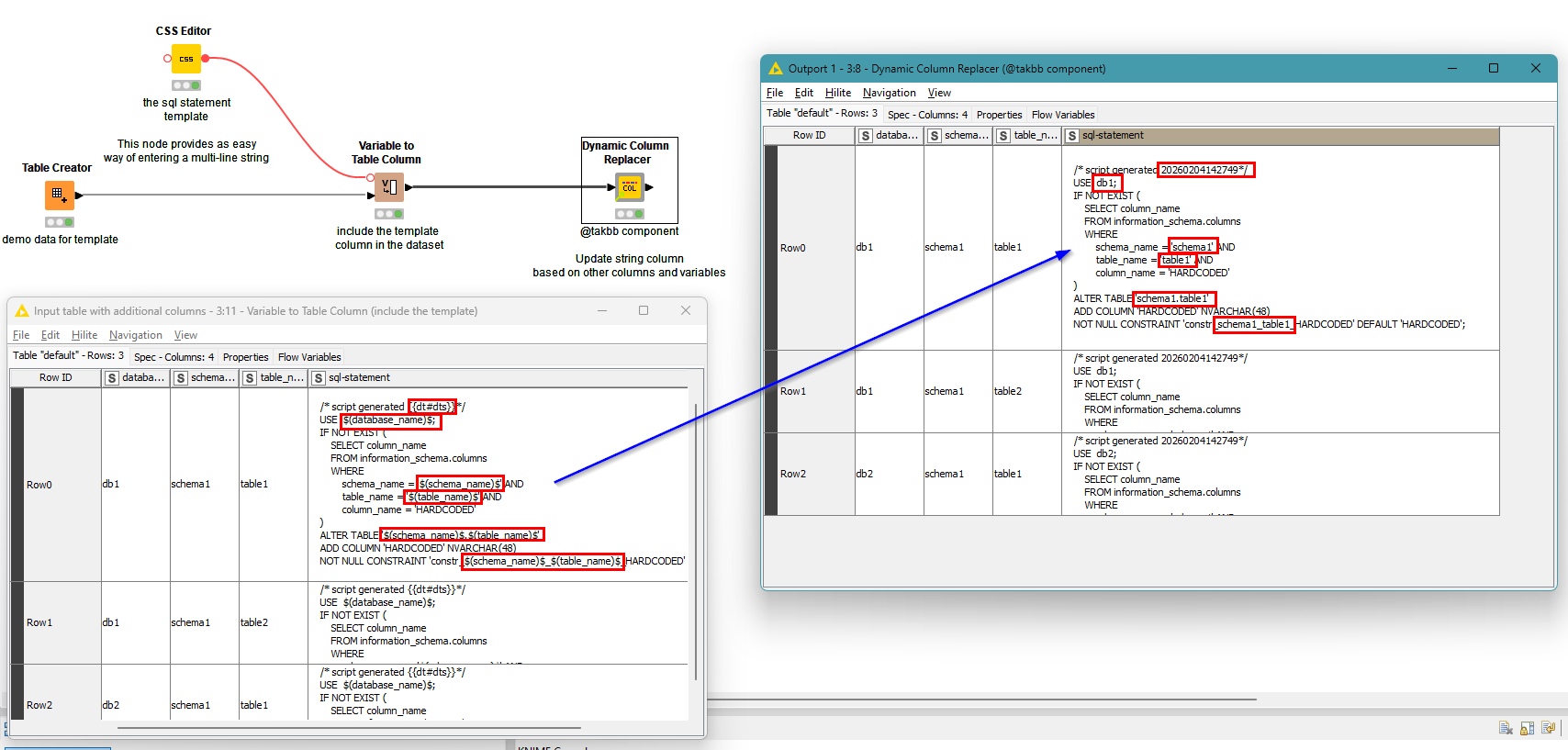 I prefer creating e.g. SQL statements or REST statements ahead of time in full text within Knime. This enables me to copy the statements out of Knime and e.g. use them directly with a different SQL Tool.