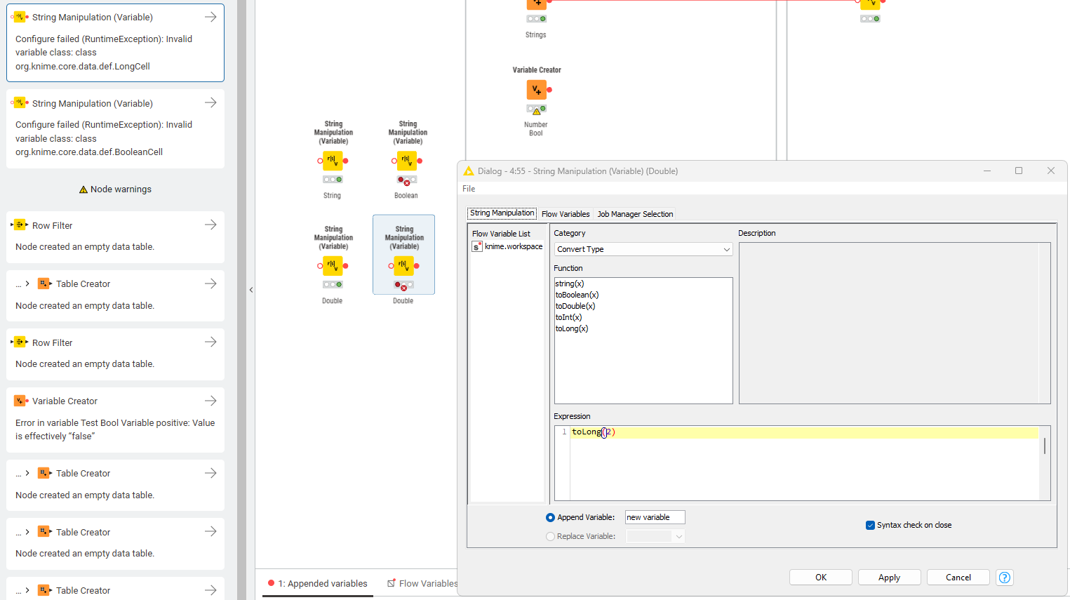 Configure failed (RuntimeException): Invalid variable class: class org.knime.core.data.def.LongCell