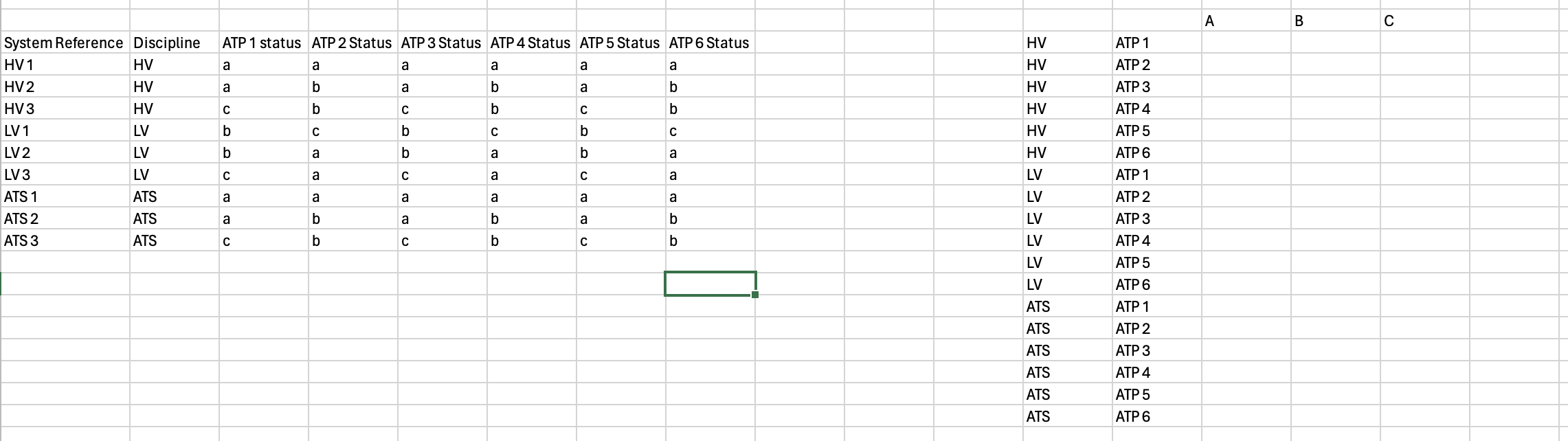 based on your example you first have to unpivot your source table keeping system reference and discipline as retained column and unpivot all other colmuns. Next you need to pivot your results using discipline and columnnames column as group condition, columnvalues column as pivot condition and system reference column for aggregation with function count.
