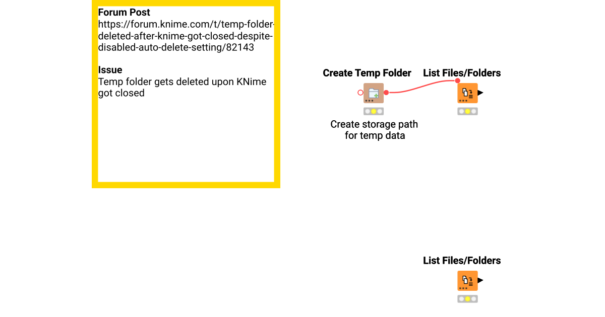 I noticed a very annoying bug where the temp folder gets deleted upon Knime gets closed. The auto deletion setting upon node reset is disabled, though.