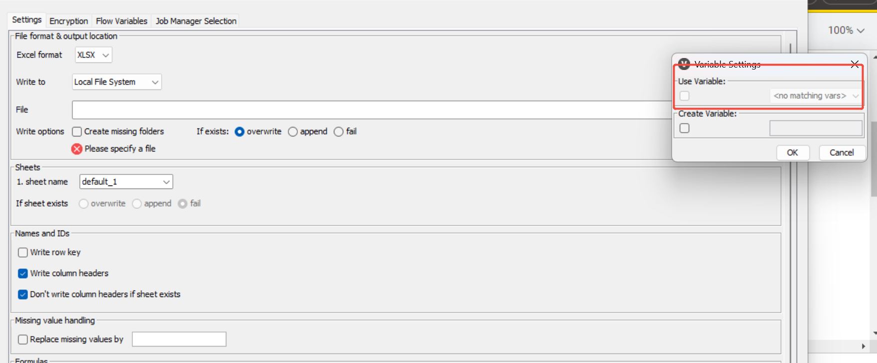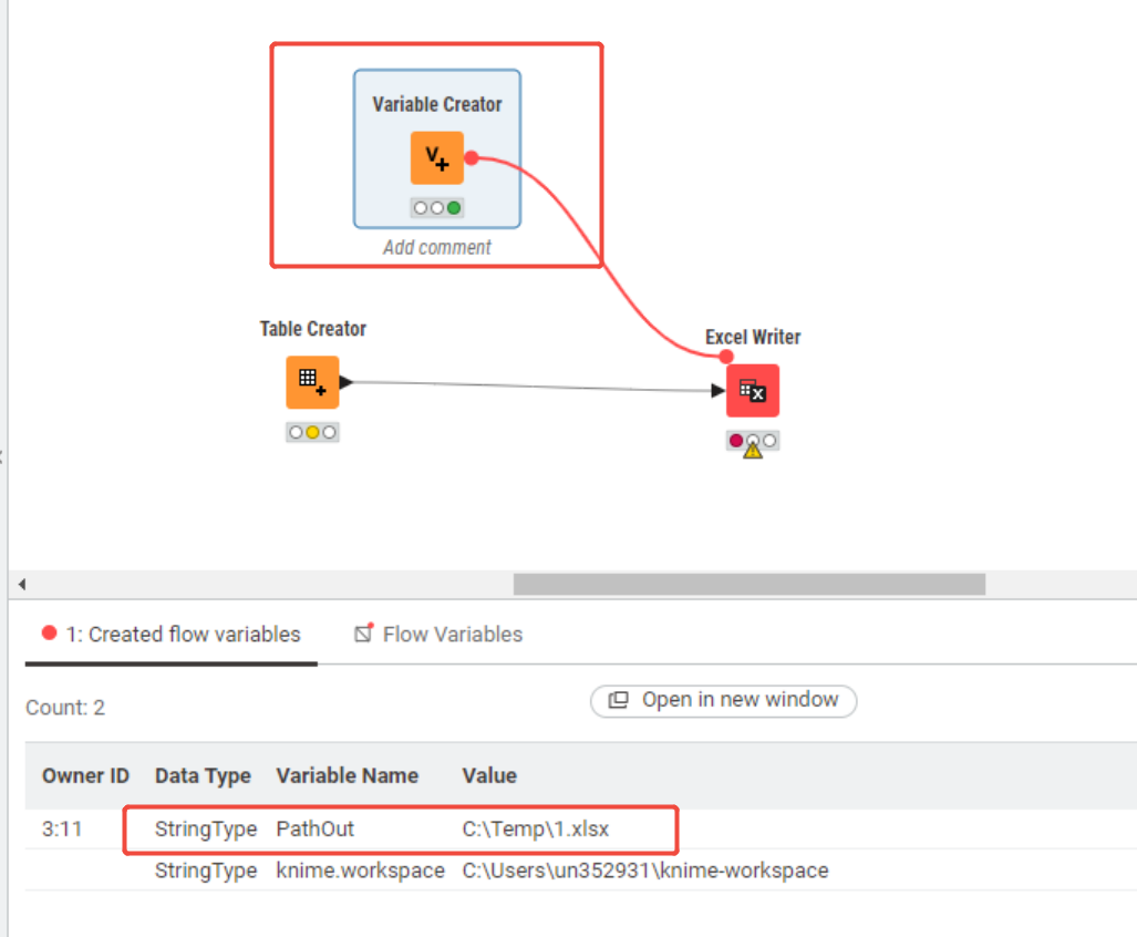 Despite this, the issue persists. Could anyone advise on how to properly use a variable created in Variable Creator so that it can be accessed by the Excel Writer node? Or am I misunderstanding the difference between Variables and Flow Variables?