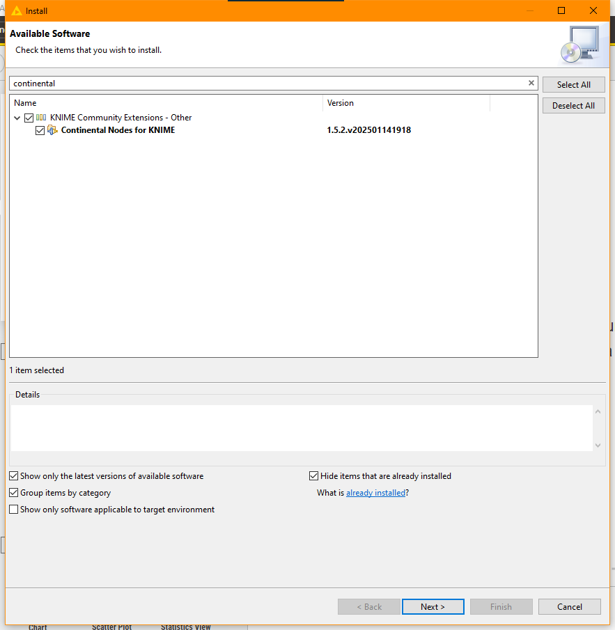 PS: finding it via “continental” in the Install extensions windows should still work, as the identifier (com.continental.knime) did not change.