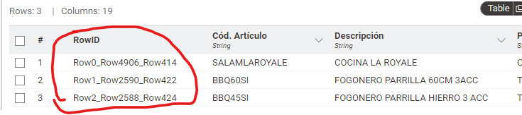 The joiner was based on the RowId.